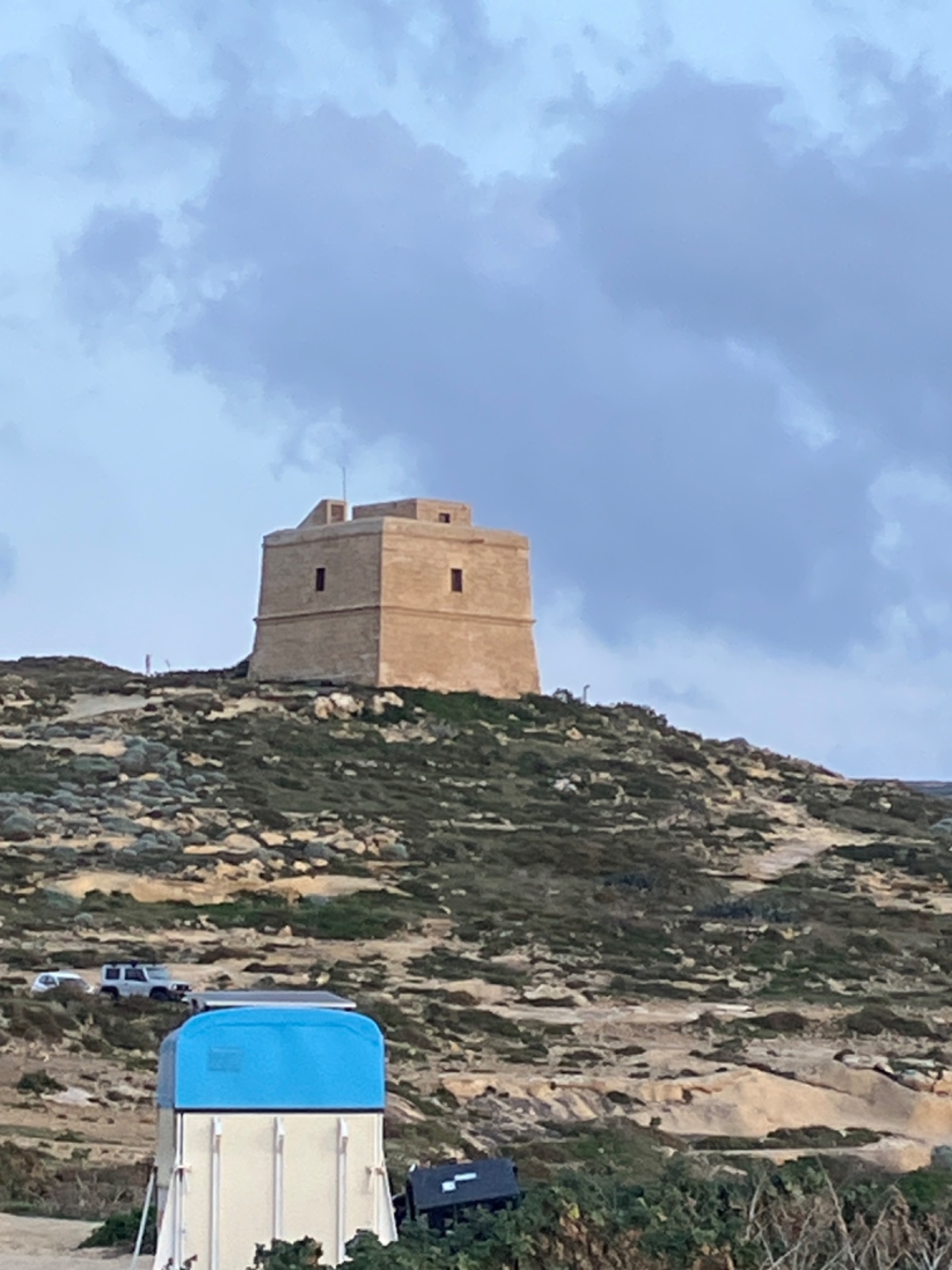 Wieża Dwejra zbudowana w 1651 r. za Wielkiego Mistrza Lascarisa chroniła wybrzeże i strzegła cennej rośliny na Fungus Rock. Czterech strażników pełniło warty 24/7.